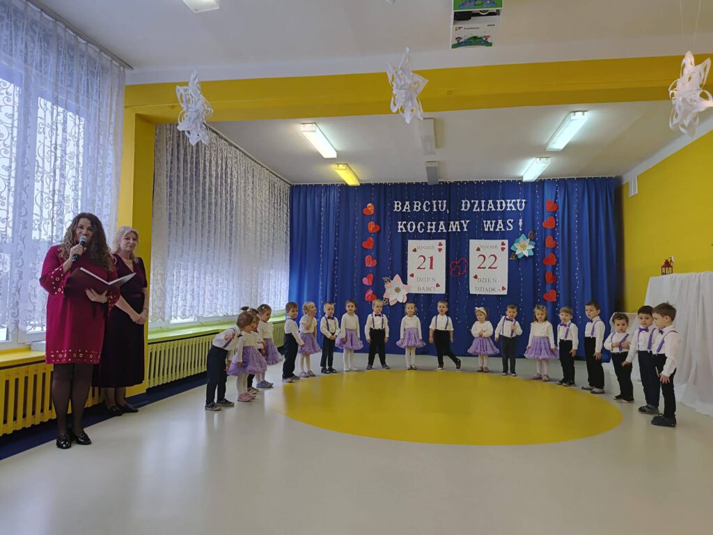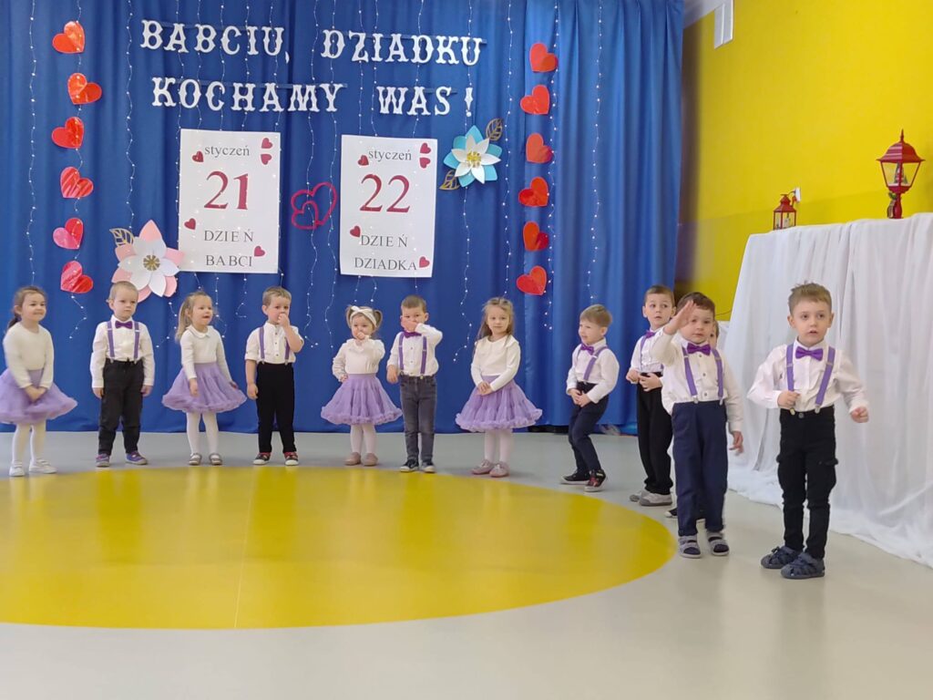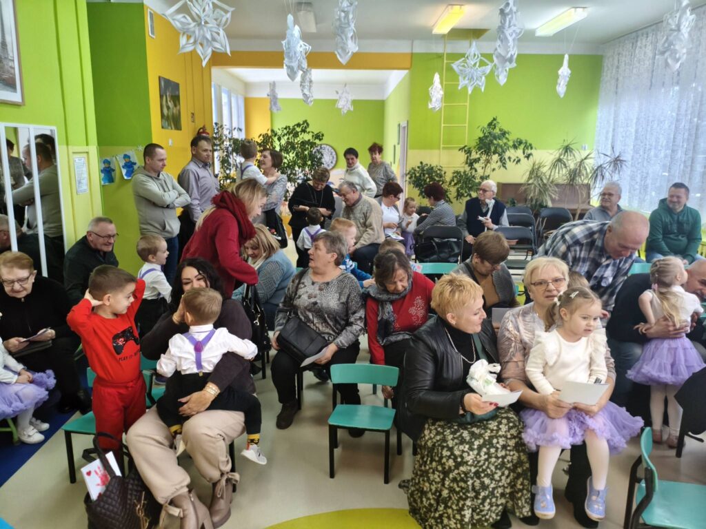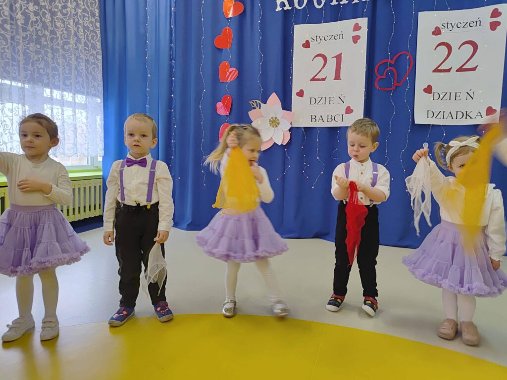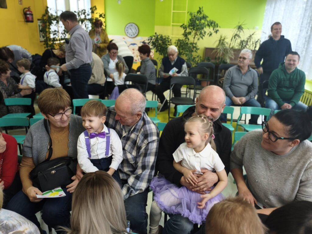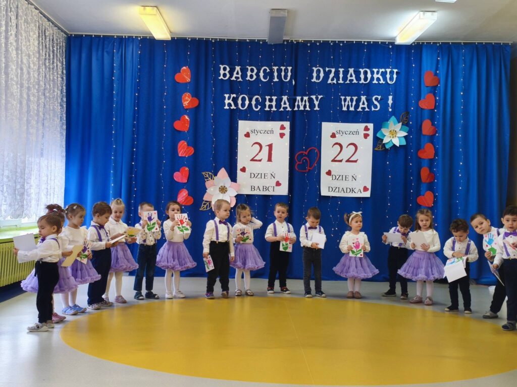 Z okazji dnia Babci i Dziadka 3 latki przygotowały przedstawienie w formie słowno -muzycznych wystąpień. W przepięknej scenografii mali artyści z przejęciem prezentowali swoje umiejętności. Oczywiście nie zabrakło też własnoręcznie zrobionych upominków, które dzieci wręczyły swoim ukochanym Babciom i Dziadkom.