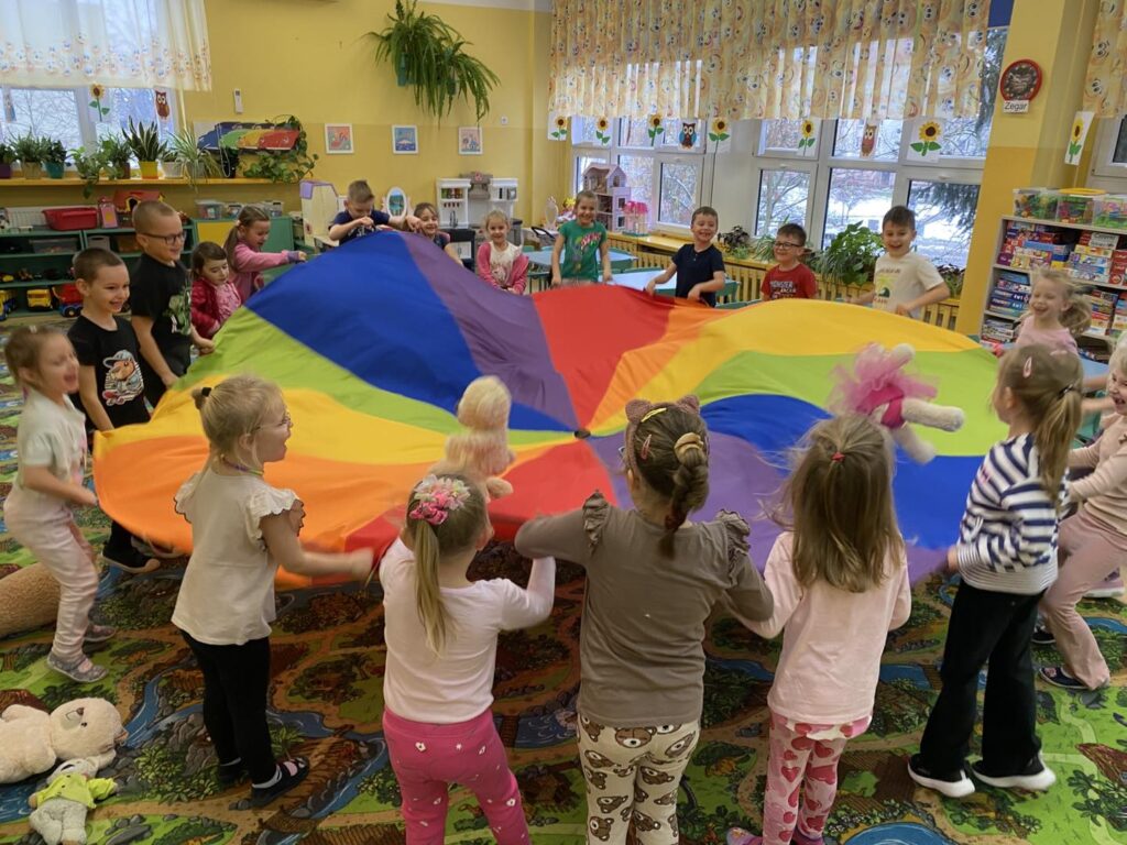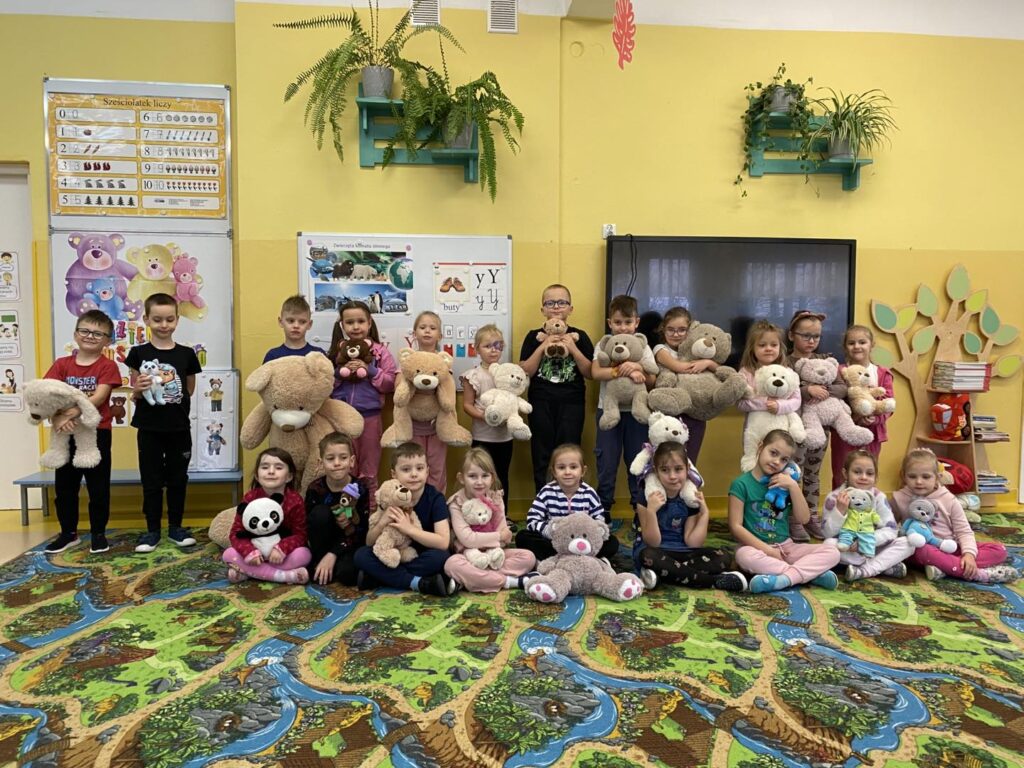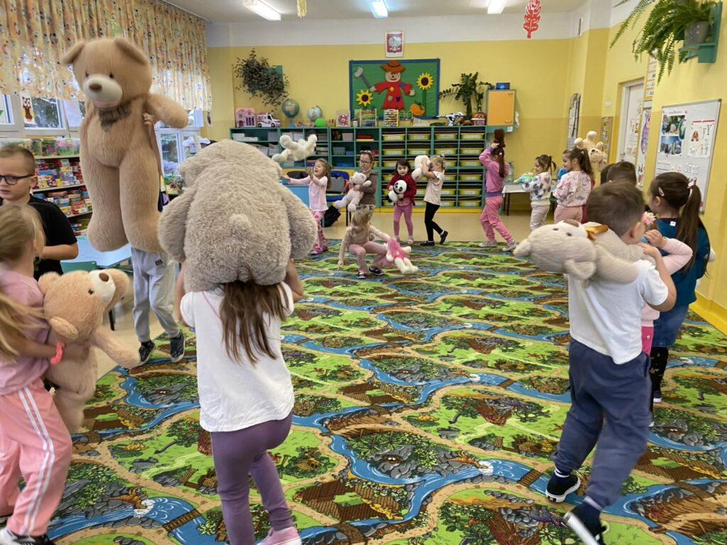 W dniu 25 listopada w grupie 6-latków obchodziliśmy Światowy Dzień Pluszowego Misia. Dzieci chętnie opowiadały o swoich ukochanych przytulankach i wspólnie bawiły się do znanych misiowych przebojów. Przedszkolaki m.in. poznały historię Pluszowego Misia, wykonały dyktando graficzne, a także bawiły się chustą animacyjną. Ten dzień był pełen uśmiechu i radości.