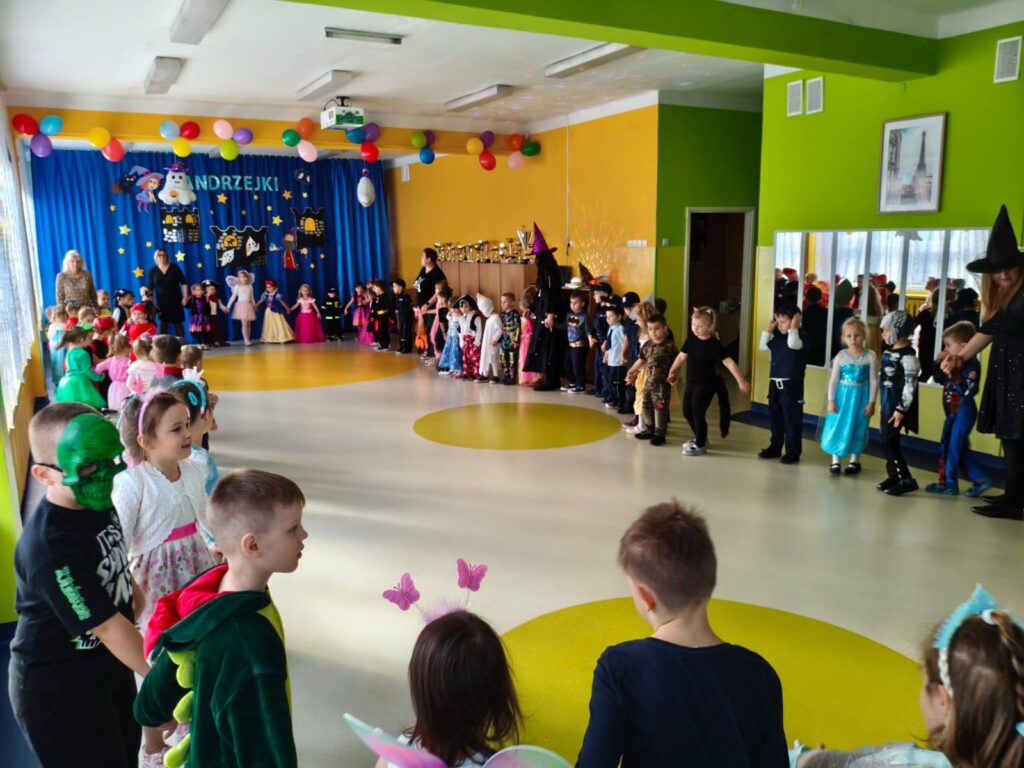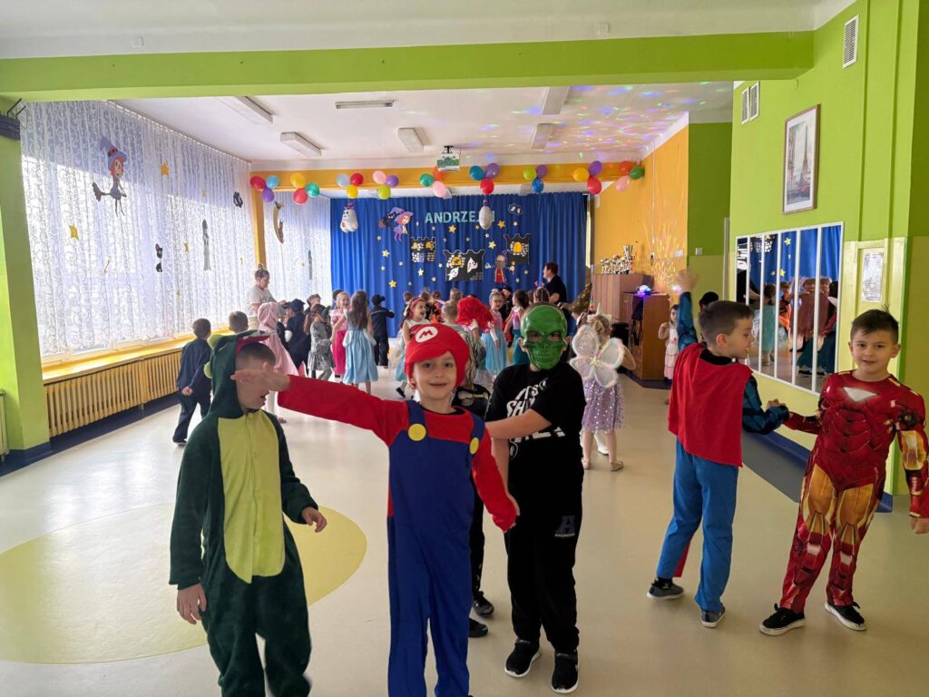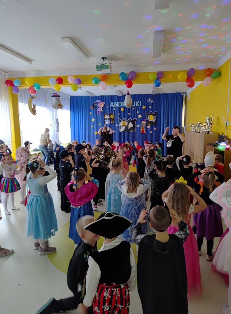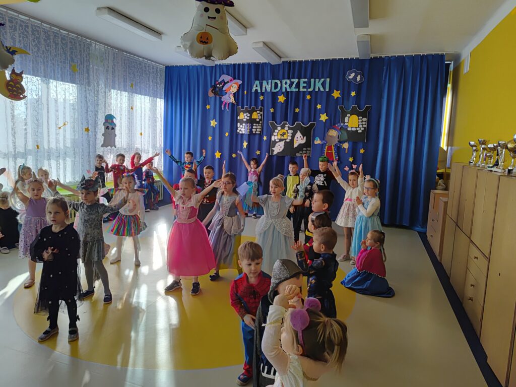 28 listopada w naszym przedszkolu obchodziliśmy Andrzejki. Skoczna muzyka i piękne dekoracje wprowadziły wszystkich w świat magii. Andrzejkową atmosferę dopełniły kolorowe stroje, w które dzieci były przebrane. Nie zabrakło baletnic, czarownic, księżniczek, strażaków, policjantów, dinozaurów i innych bajkowych postaci. Ten dzień był dla naszych przedszkolaków dniem radosnych zabaw oraz tańców przy największych dziecięcych przebojach.