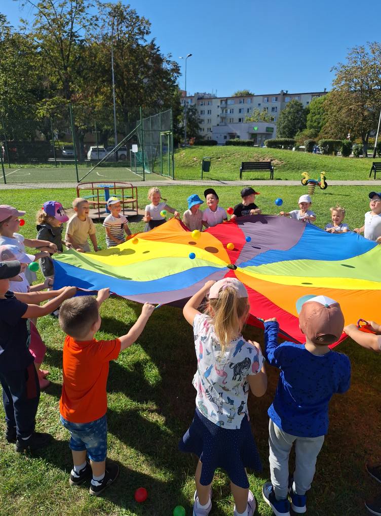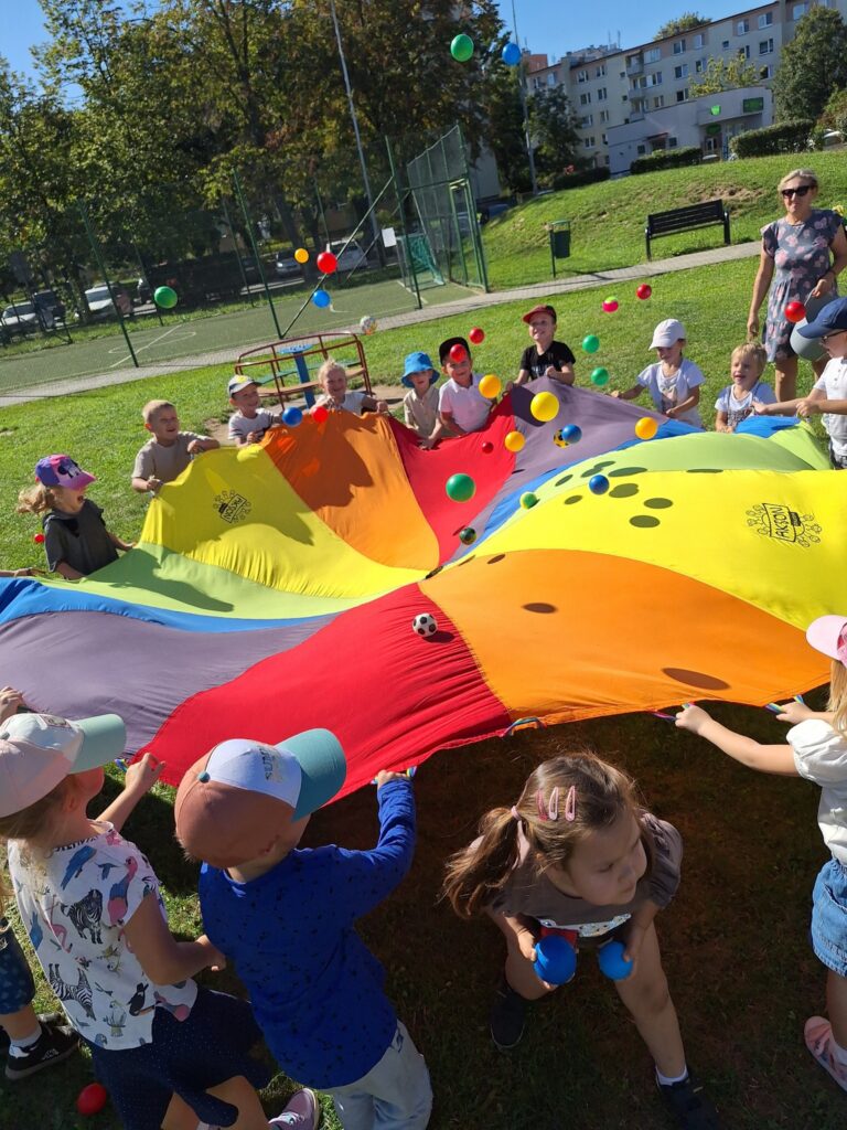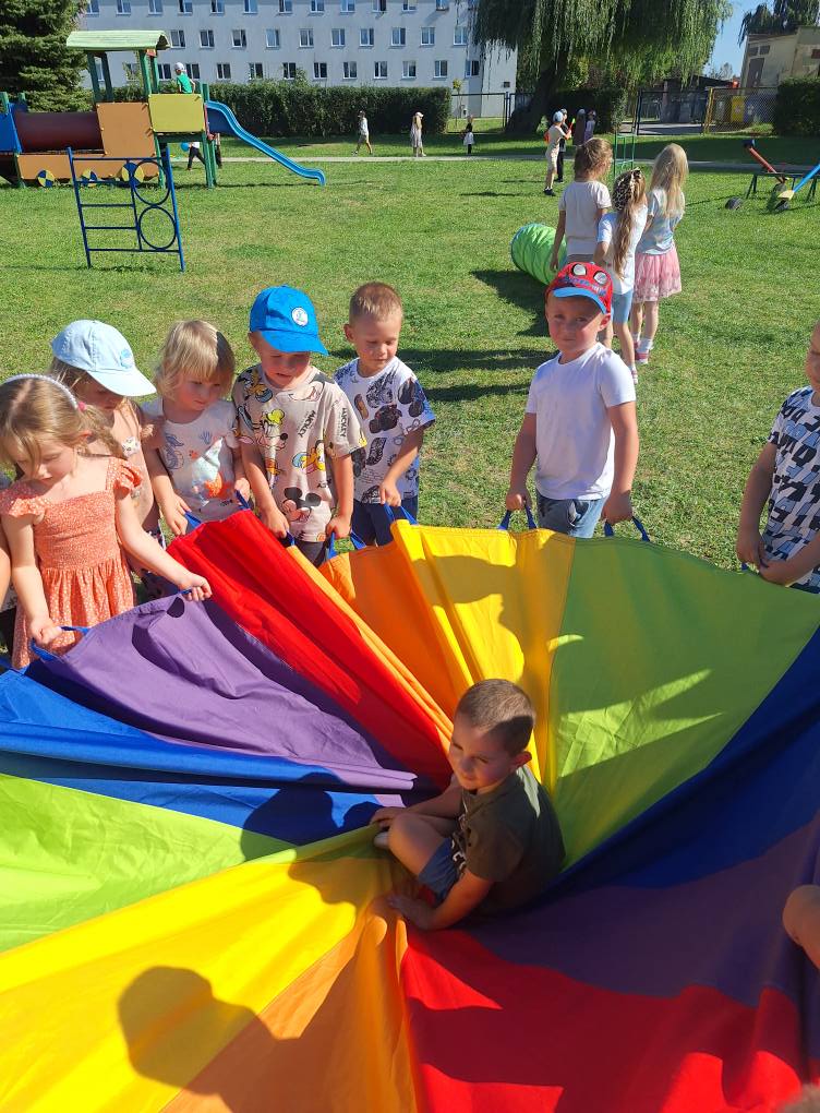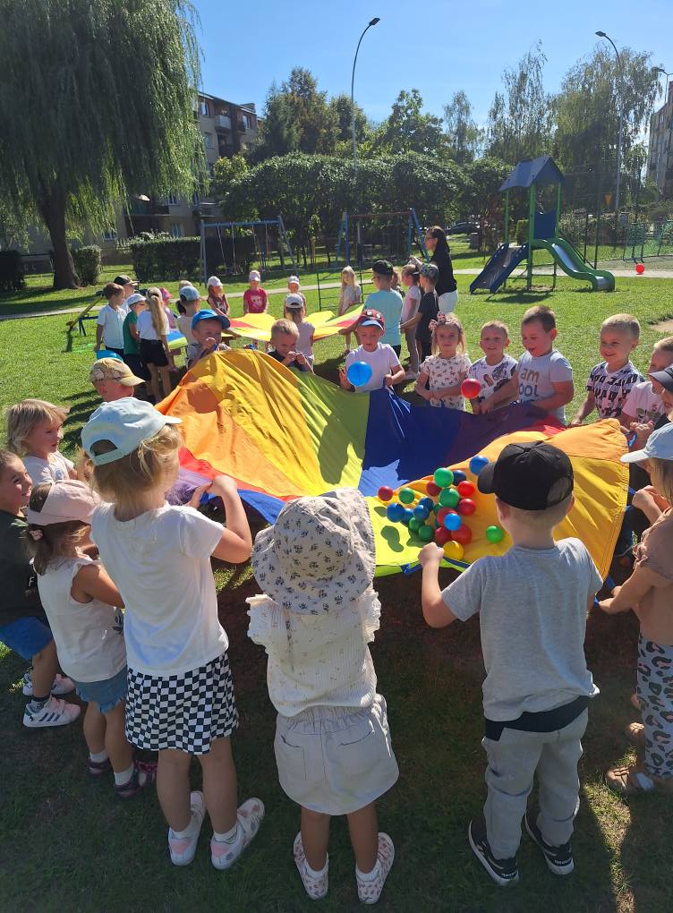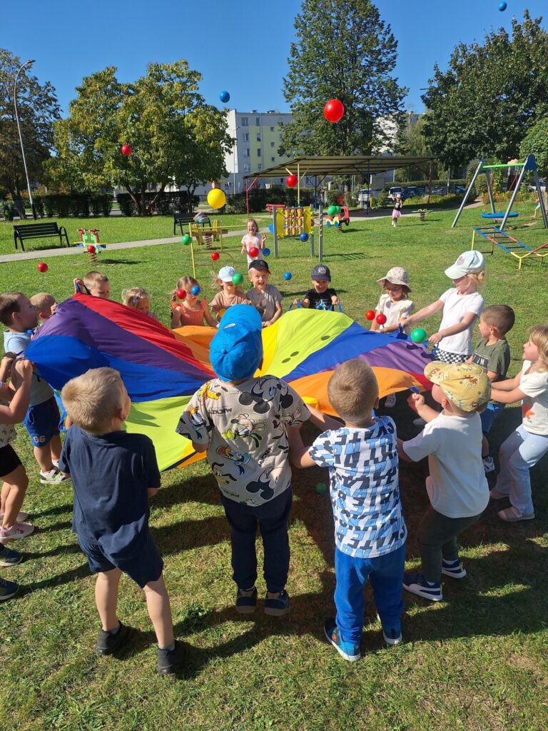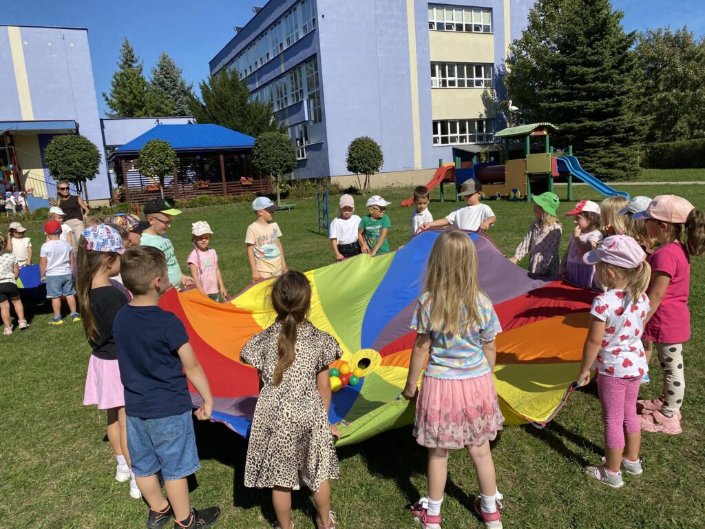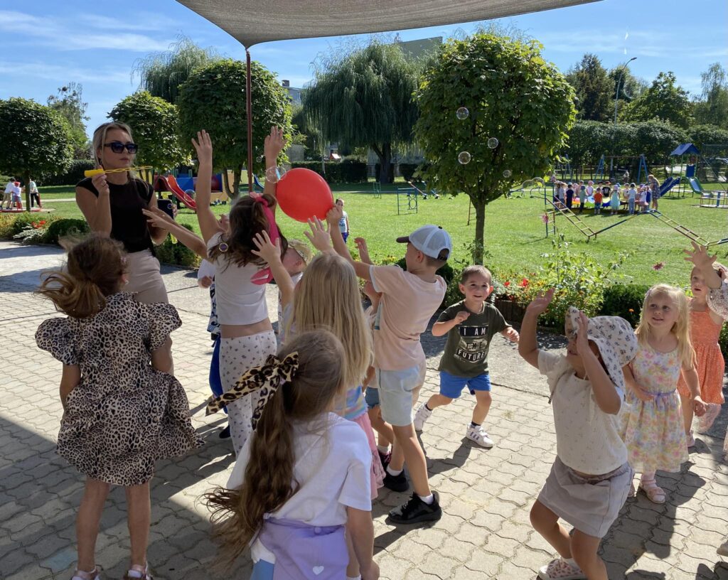 W poniedziałek, 22 września kolejny raz obchodziliśmy w naszym przedszkolu Ogólnopolski Dzień Przedszkolaka. Na dzieci czekało wiele niespodzianek i atrakcji. Przedszkolaki wesoło bawiły się przy muzyce w towarzystwie baniek mydlanych, konkurowały podczas zawodów sportowych, bawiły się chustą animacyjną oraz korzystały ze sprzętu terenowego znajdującego się na naszym placu zabaw.