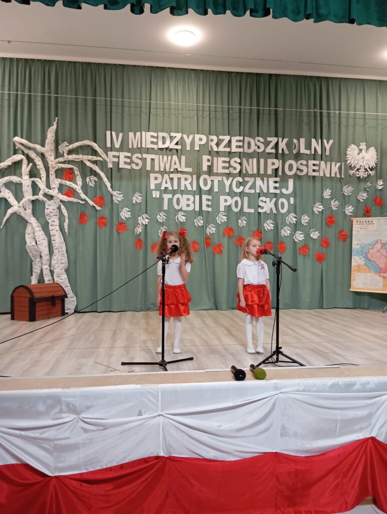 Serdecznie gratulujemy Liliance i Lence z grupy 5- latków udziału w ,, lV Między przedszkolnym Festiwalu Pieśni i Piosenki Patriotycznej ,,Tobie Polsko” organizowanym przez Przedszkole Katolickie im. Św. Józefa w Tarnobrzegu. Liliana i Lena pięknie zaśpiewały w duecie piosenkę patriotyczną pt.:,, Polska – moje miejsce na ziemi”.