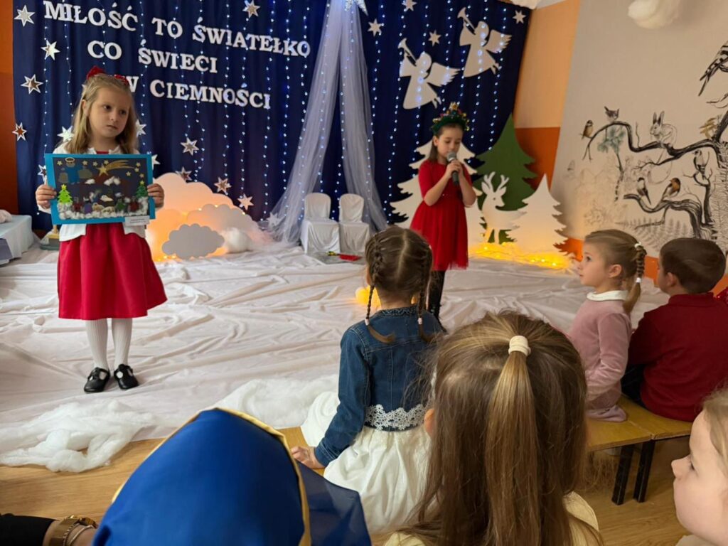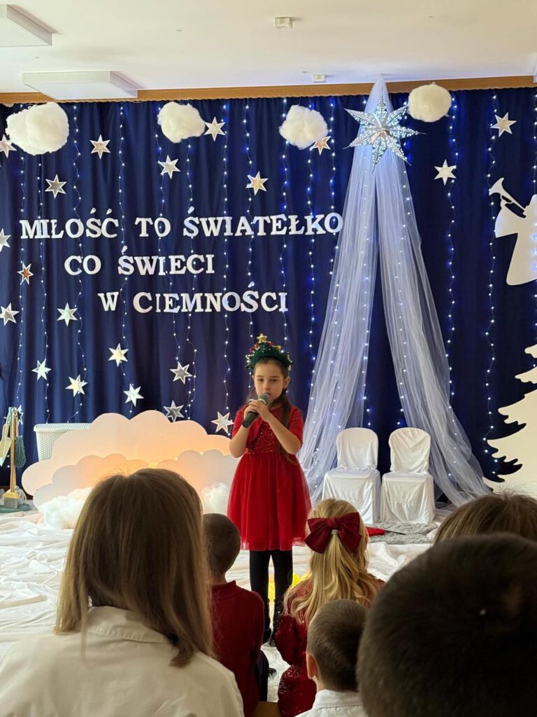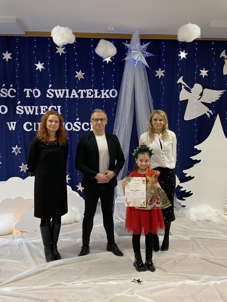 Dnia 11.12.2025 r. reprezentantka naszego przedszkola Zuzia z grupy 6 – latków wzięła udział w konkursie muzyczno – plastycznym „Piosenka świąteczna – pędzlem malowana” w Przedszkolu nr 7 w Tarnobrzegu. Organizatorom dziękujemy za zaproszenie do udziału w konkursie, a Zuzi gratulujemy wspaniałego występu i życzymy kolejnych sukcesów wokalnych.
