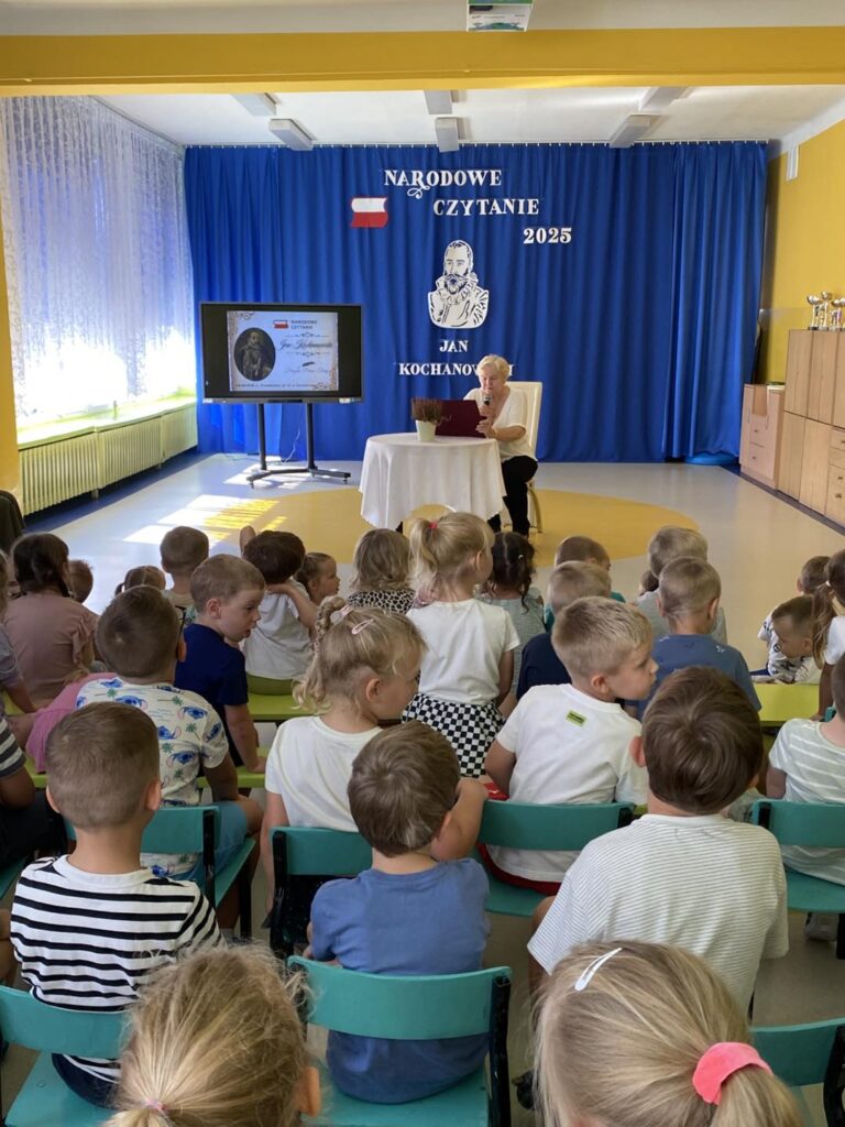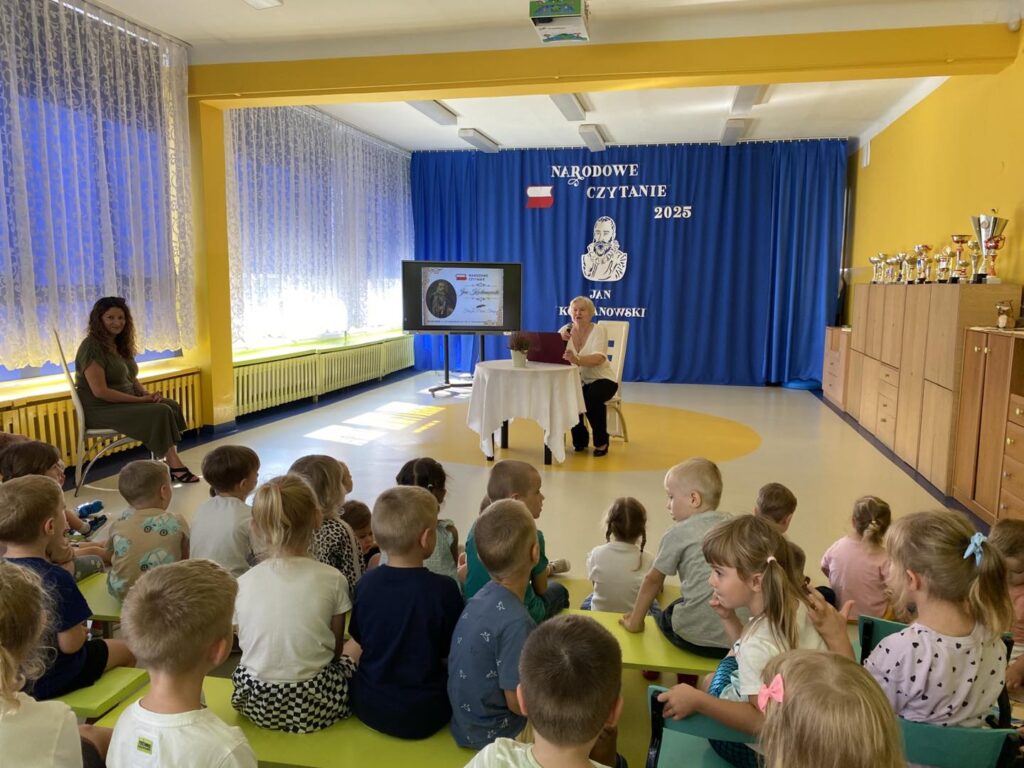 05.09.2025 r. nasze przedszkole po raz kolejny uczestniczyło w ogólnopolskiej akcji „Narodowe Czytanie” pod patronatem Pary Prezydenckiej. Zaproszenie do wspólnego czytania przyjęła Pani Bogumiła Karkut, była Dyrektor Przedszkola nr 12, która przeczytała przedszkolakom fraszki Jana Kochanowskiego pt. „Na zdrowie” i „Na lipę”. Serdecznie dziękujemy za miłe spotkanie i poświęcony czas.