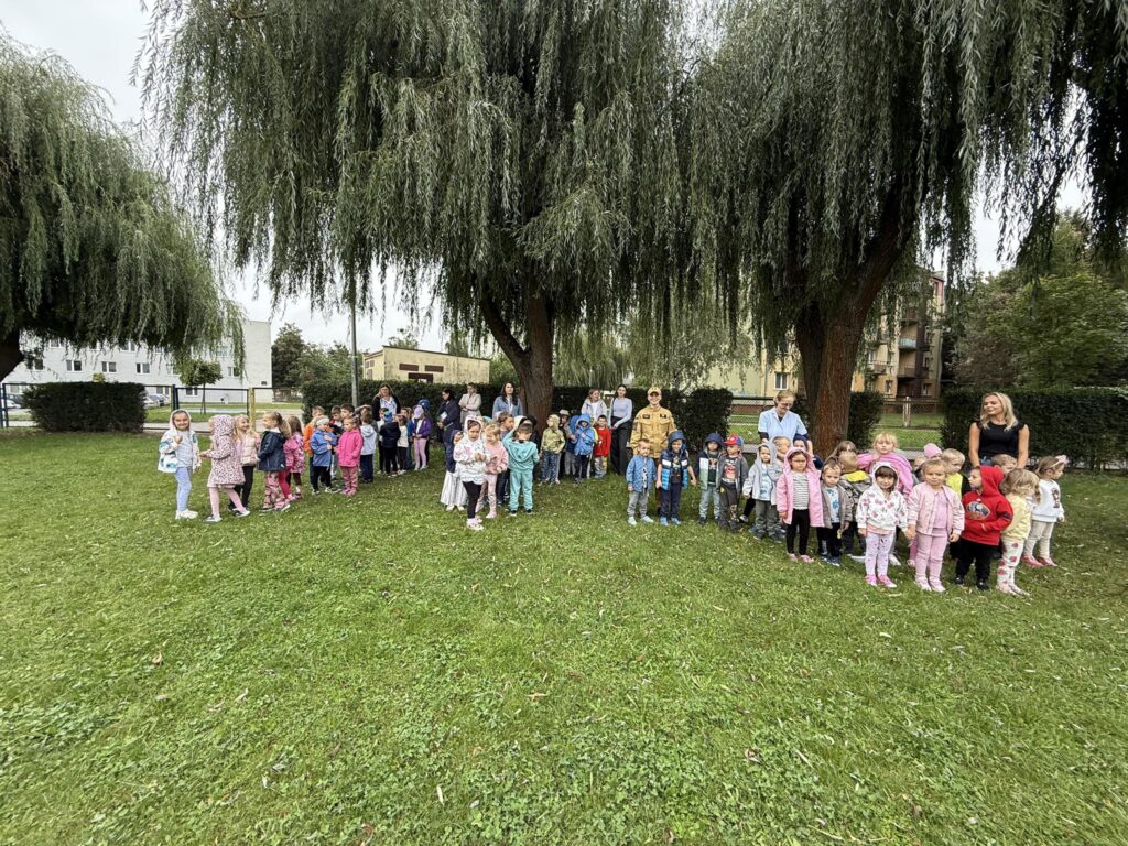 23.09.2025r. (wtorek) w naszym przedszkolu miała miejsce próbna ewakuacja awaryjna. Celem akcji było nabywanie przez dzieci umiejętności właściwych zachowań w sytuacji zagrożenia, zapoznanie ich z zasadami bezpiecznej ewakuacji, zapoznanie pracowników z praktycznym prowadzeniem ewakuacji osób przebywających w budynku. Wszystkie dzieci bardzo sprawnie, bezpiecznie i szybko opuściły budynek przedszkola – 8 min.1 s. W ewakuacji próbnej wzięły udział wszystkie obecne w tym dniu dzieci z 4 grup wiekowych (88) oraz pracownicy przedszkola (15) i 1 rodzic dziecka. Łącznie 104 osoby. Ćwiczenia tego typu są bardzo potrzebne, gdyż odgrywają dużą rolę społeczną. Oswajają dzieci oraz kadrę pedagogiczną i pracowników obsługi do sytuacji, w której może zaistnieć konieczność szybkiego, zorganizowanego i pozbawionego elementu paniki opuszczenia miejsca nauki, zabawy i pracy.