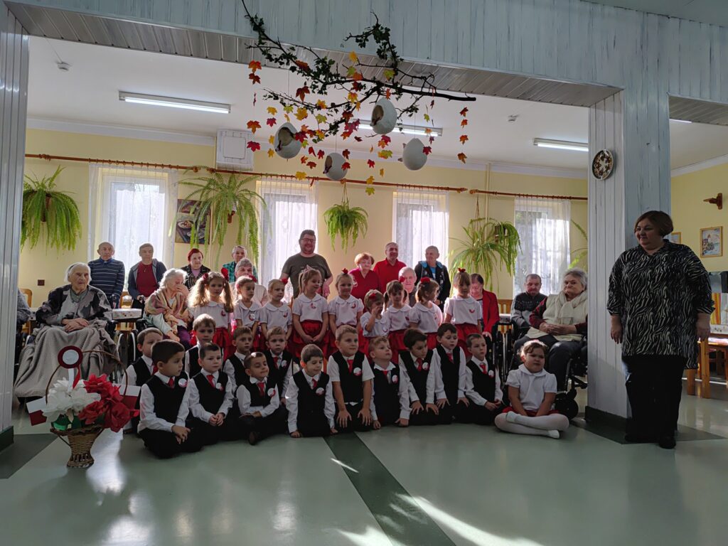 5-latki z wizytą w Domu Pomocy Społecznej w Tarnobrzegu z okazji obchodów Święta Niepodległości. 13 listopada przedszkolaki z wielkim zaangażowaniem zaprezentowały montaż słowno-muzyczny pt. „Tobie Polsko”.